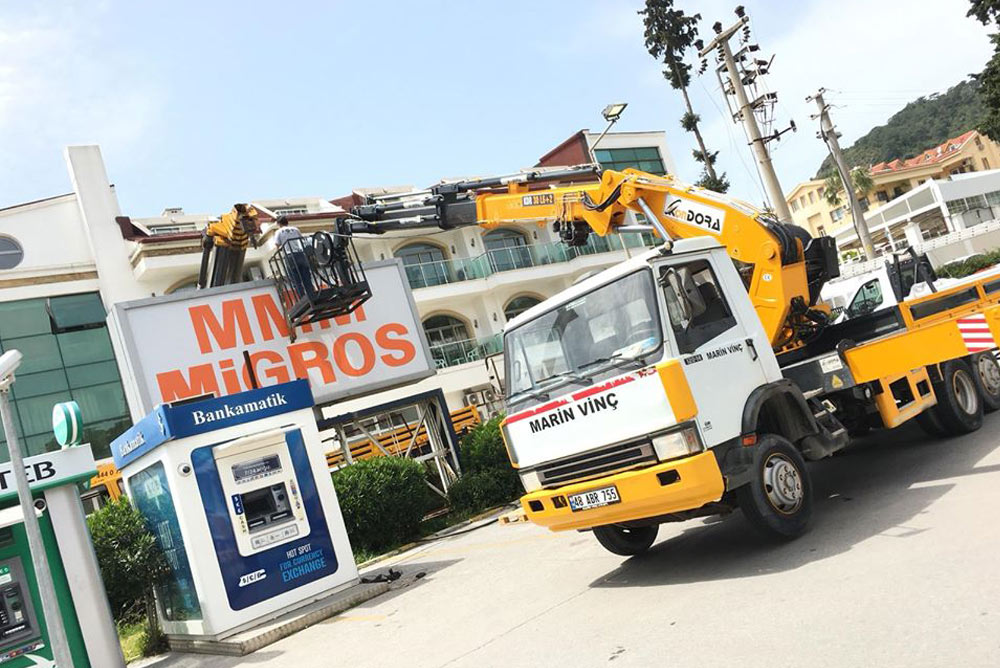 (2.3 metre genişlik x 7 metre uzunluk) ölçülere sahip her çeşit malzeme taşımacılığı, Tekne ve bot taşıma. Hidrolik sepet ile çalışma imkanı (iş güvenliği kurallarına uygun)!